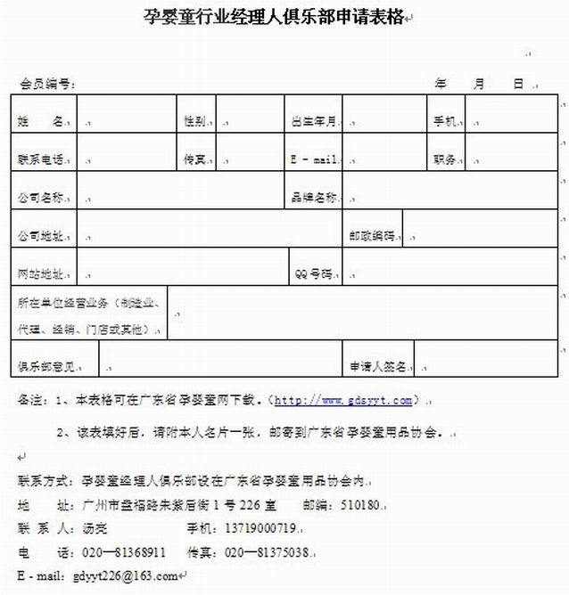 附件:孕嬰童行業(yè)經(jīng)理人俱樂部申請(qǐng)表