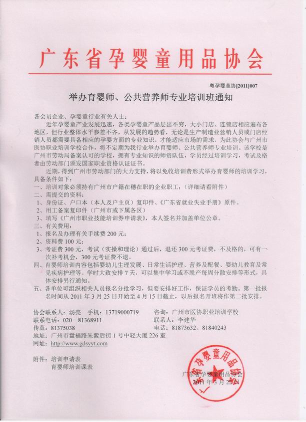 舉辦育嬰師、公共營(yíng)養(yǎng)師專(zhuān)業(yè)培訓(xùn)班通知