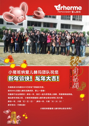 熱熱鬧鬧的農(nóng)歷春節(jié)就要來(lái)了,大家都沉浸在對(duì)過(guò)去一年的回憶和新一年的美好展望中,著名嬰童服飾品牌小豬班納、愛(ài)兒赫瑪全體員工在這特殊的日子里向全國(guó)人民拜個(gè)早年,祝大家新年愉快!龍年大吉!