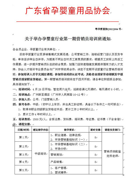 關(guān)于舉辦孕嬰童行業(yè)第一期營銷員培訓(xùn)班通知