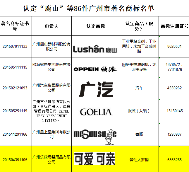 據(jù)此,廣州市著名商標(biāo)認(rèn)定委員會在對“可愛可親”商標(biāo)有關(guān)持續(xù)使用年限、公眾熟知度和知名度、商標(biāo)所有人的信譽度、商標(biāo)管理制度完善程度等方面進行嚴(yán)格評審,在參考了可愛可親近三年的經(jīng)濟指標(biāo)(銷售額或營業(yè)收入、利潤、稅收等必須在同行業(yè)中位居前列,且發(fā)展良好)、商標(biāo)宣傳廣度和覆蓋地域范圍的同時,對可愛可親的產(chǎn)品、服務(wù)等方面進行了綜合審議,最終認(rèn)定“可愛可親”商標(biāo)為“廣州市著名商標(biāo)”。