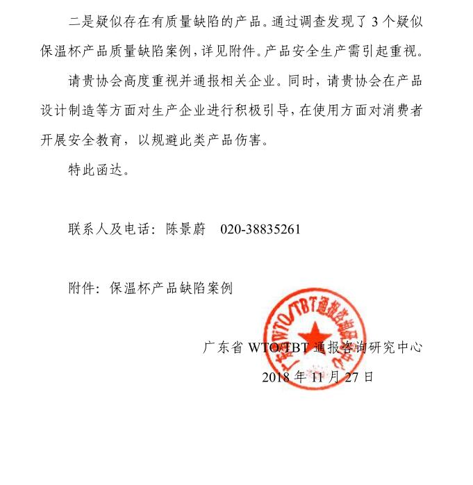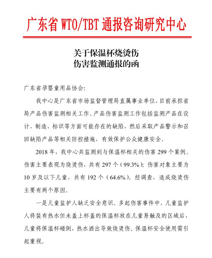 關(guān)于保溫杯燒燙傷 傷害監(jiān)測通報(bào)的函