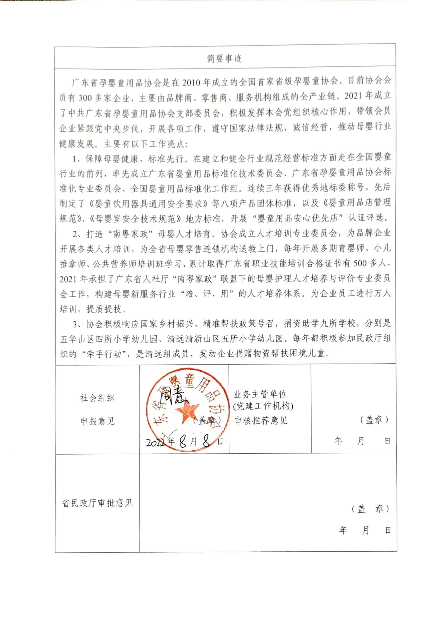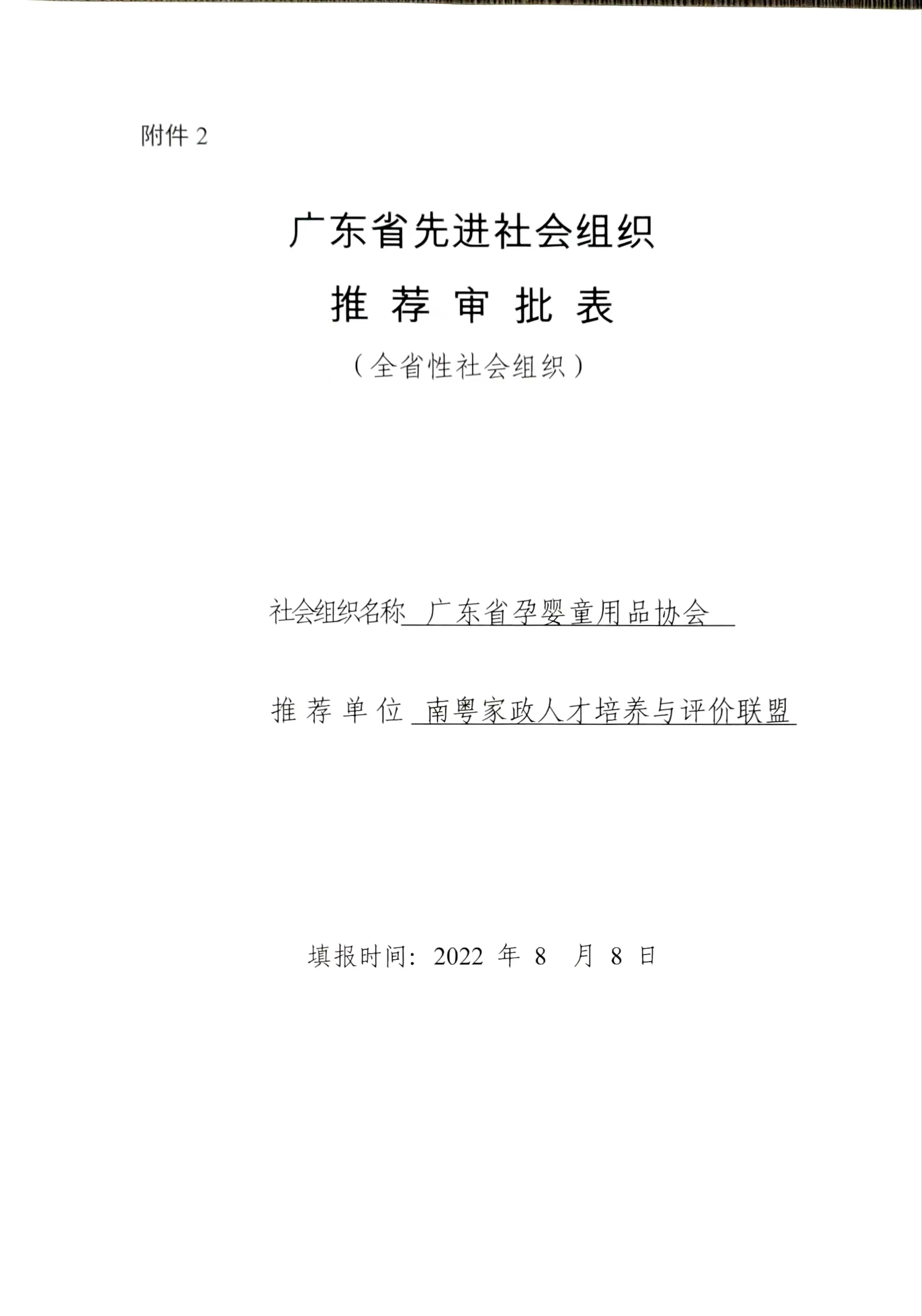 廣東省孕嬰童用品協(xié)會正在參評由廣東省人力資源和社會保障廳 廣東省民政廳開展的“廣東省先進社會組織”評選表彰活動。經(jīng)理事會討論通過。