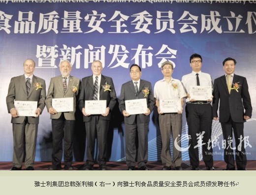 本月7日下午,雅士利集團(tuán)(下稱雅士利)在廣州香格里拉大酒店,隆重召開新聞發(fā)布會,正式宣布“雅士利食品質(zhì)量安全委員會”(The Food Quality and Safety Advisory Committee)成立?! ≈袊橹破饭I(yè)協(xié)會理事長宋昆岡,廣東省質(zhì)量技術(shù)監(jiān)督局黨組成員、副局長高國盛,潮州市委常委、常務(wù)副市長方利旭,廣東省食品生產(chǎn)監(jiān)管處處長張欣,潮州市食品安全委員會主任、食品藥品監(jiān)督管理局局長丁少輝,潮州市質(zhì)量技術(shù)監(jiān)督管理局局長龐大春,潮安縣食品藥品監(jiān)督管理局局長劉旭輝,雅士利集團(tuán)董事長張利坤、總裁張利鈿,凱雷投資集團(tuán)董事張馳和復(fù)星集團(tuán)副總裁金重仁等各界人士參加了成立儀式。 據(jù)悉,雅士利食品質(zhì)量安全委員會由6名分別代表不同學(xué)術(shù)科目、研究領(lǐng)域及地理背景的成員組成。委員會成員包括主席Robert Ennis Brackett(博士 美國)及成員Kenneth Alan Buckle(博士 澳大利亞)、Andrew Ian McKenzie(新西蘭)、何兆桓(博士 中國香港)、蔣卓勤(教授 中國)、劉烈剛(教授 中國)[排名不分前后]。 雅士利食品質(zhì)量安全委員會的成立,是雅士利集團(tuán)針對產(chǎn)品質(zhì)量和安全所建立的獨(dú)立、科學(xué)、系統(tǒng),并具有國際權(quán)威的監(jiān)督機(jī)構(gòu)。